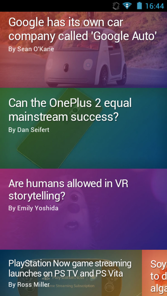 首先,它能够自己扩展或者收缩去适应任何屏幕的尺寸。设计师可以很灵活的控制卡片的比例,还可以设计固定的宽度和一致的间距来适应可变动的高度,几组卡片能够更好的适应彼此。下面的移动端截图: