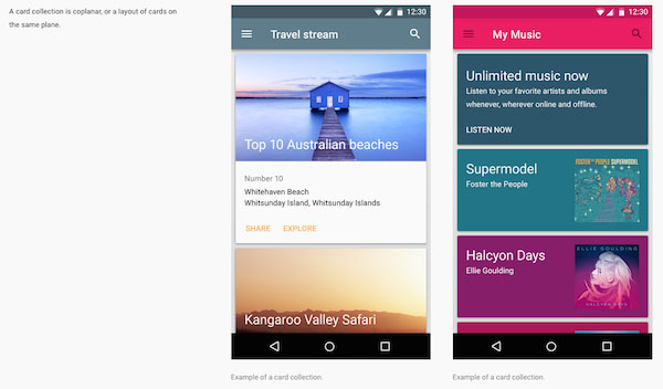 他们两个的文本信息、图像和颜色的风格都是一致的。卡片设计让用户在不同的设备上有一致性的体验。