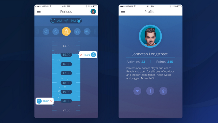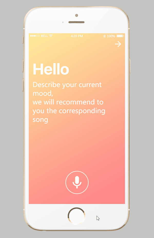 亮点:采用UI安全色蓝色为纯色背景,易于接近用户,界面简洁。界面元素为蓝色背景的颜变色,但仍旧采用梯度式渐变。