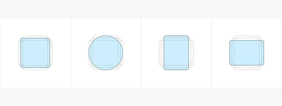 注意事项:图标设计风格有:线性图标、填充图标、面型图标、扁平图标、手绘风格图标和拟物图标等。无论我们选择何种表现形式,在进行设计的时候都要保持风格的统一性,由于图标的体量不同,相同尺寸下不同体量的图标视觉平衡不尽相同,例如相同尺寸的正方形会比圆形显大。因此,我们需要根据图标的体量对其大小做出相应的调整。