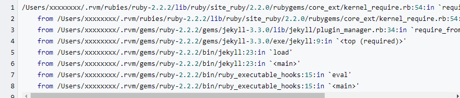 虽然博客部署完成了,你会发现博客太简单不是你想要的,如果你喜欢我的模板的话,可以使用我的模板。 首先你要获取的我博客,Github项目地址,进去https://github.com/1456132848/1456132848.github.io目录下, 使用命令部署本地服务$ jekyll server。 如果你本机没配置过任何jekyll的环境,可能会报错: