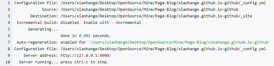bundler安装完成,后再次启动本地服务 $ jekyll server