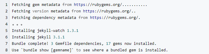 再次执行 $ jekyll server ,提示Could not find proper version of jekyll (3.1.1) in any of the sources Run bundle install to install missing gems.